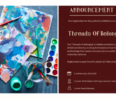 Read MoreThreads of Belonging 1 is now accepting applications for its upcoming National Day exhibition, celebrating Bahraini identity through themes of belong