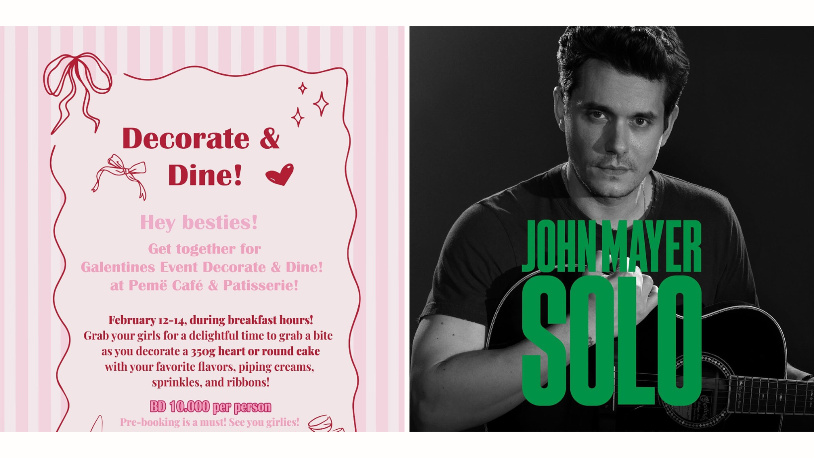 Kick off your weekend with so much going on around Bahrain! Sign up for a scenic morning photo walk along the Muharraq coastline, celebrate Galentine’s Day with your girls, check out the biggest car show in the Kingdom, and swing by the Formula 1 Pre-Season Testing 2026 and that’s just the start